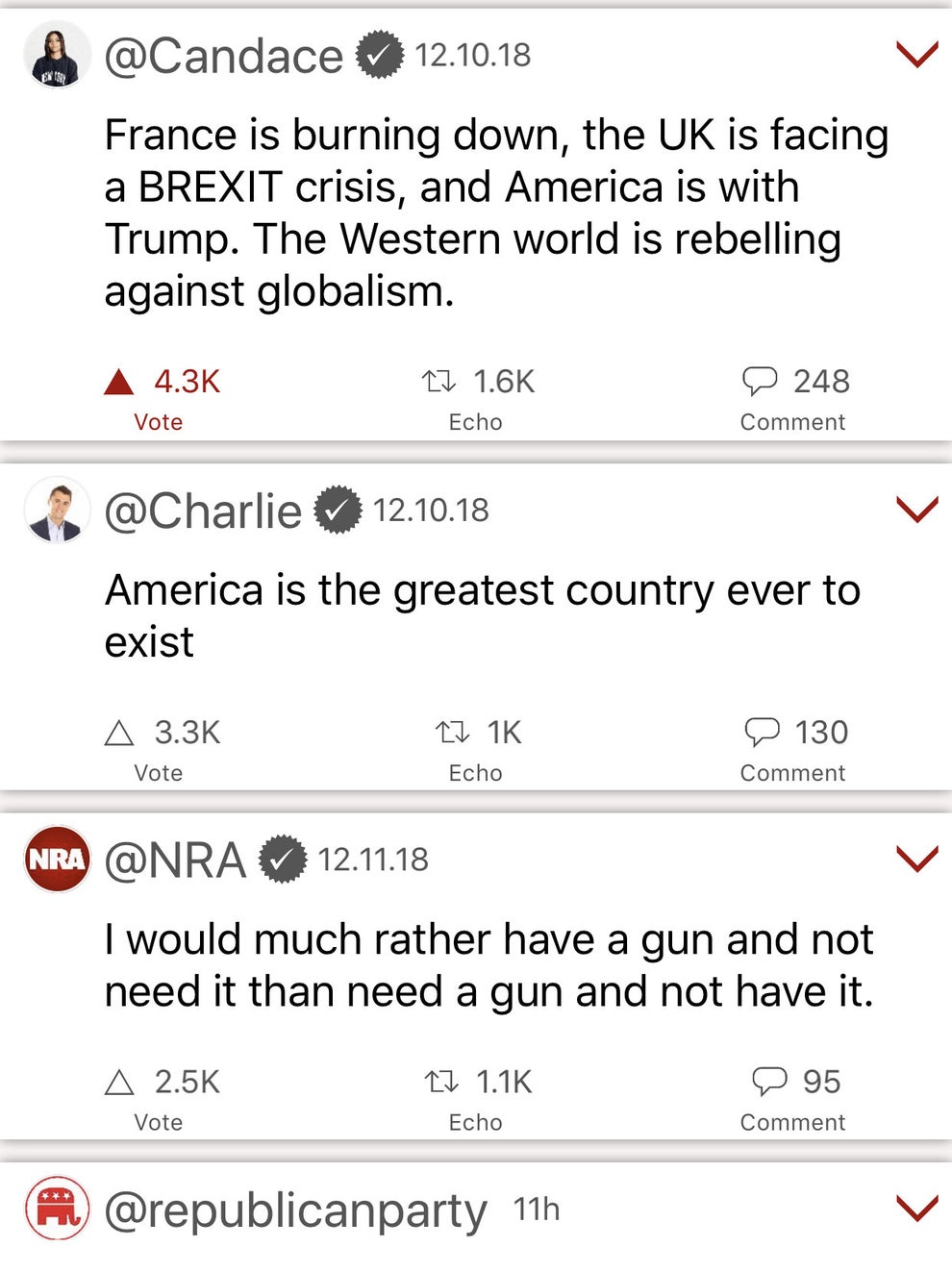 The parler is an unbiased social media platform offering free expression in other words a conservative alternative to twitter and facebook.